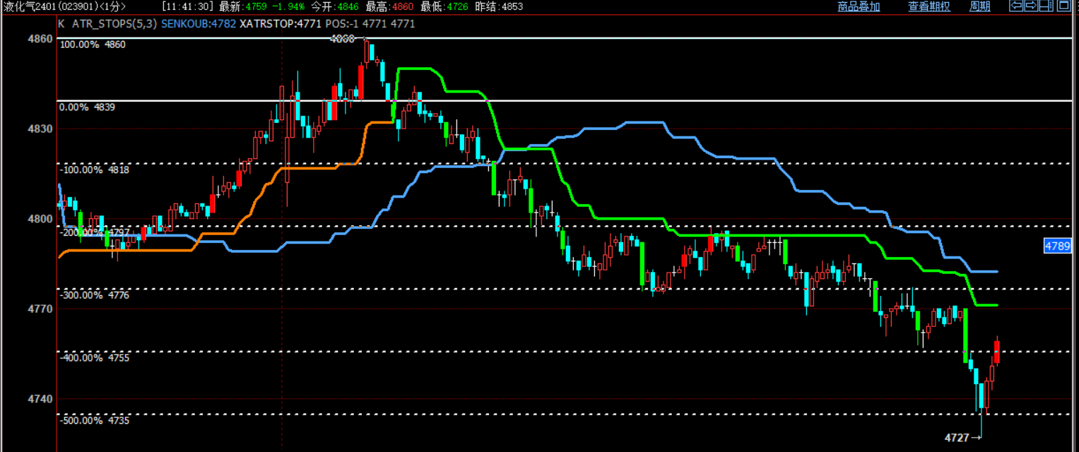 使用时百分比工具在开仓价点一下,释放鼠标,然后向止损位拖。这样止损是100%。