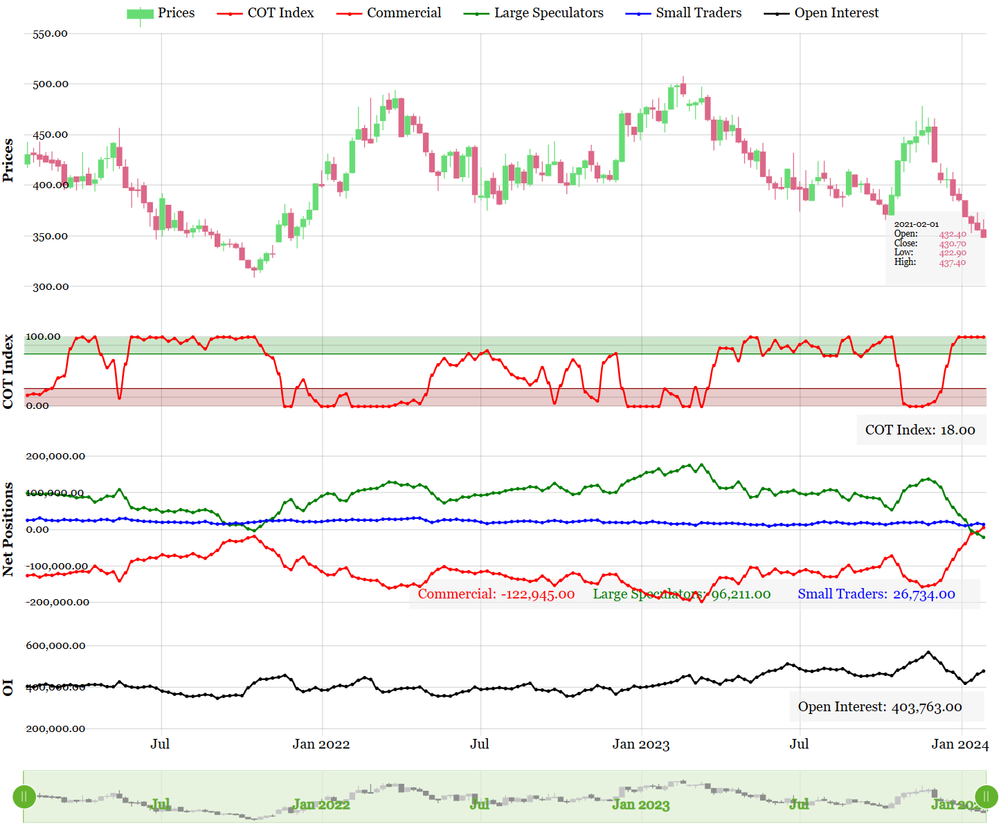 之前逛 youtube 时看了几个 Larry Williams 的访谈,算法给我推了一个播主 COT Report Trading Strategy,此人有个网站 https://insider-week.com/en/about-us/ ,一看就是 Larry Williams 的门徒。这个网站的好处是免费提供了 COT 相关的工具,使你更方便的看 COT 的持仓趋势。Larry Williams 是出过一本书,中文名是《与狼共舞——股票、期货交易员持仓报告(COT)揭秘》,这本书其实比《短线交易秘诀》有用的多。千万不要以为 Larry Williams 是一个日内交易者,去搞大区间日,其实他获得冠军的秘诀是 COT 持仓报告,持仓 12-15 天的趋势。